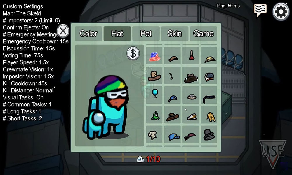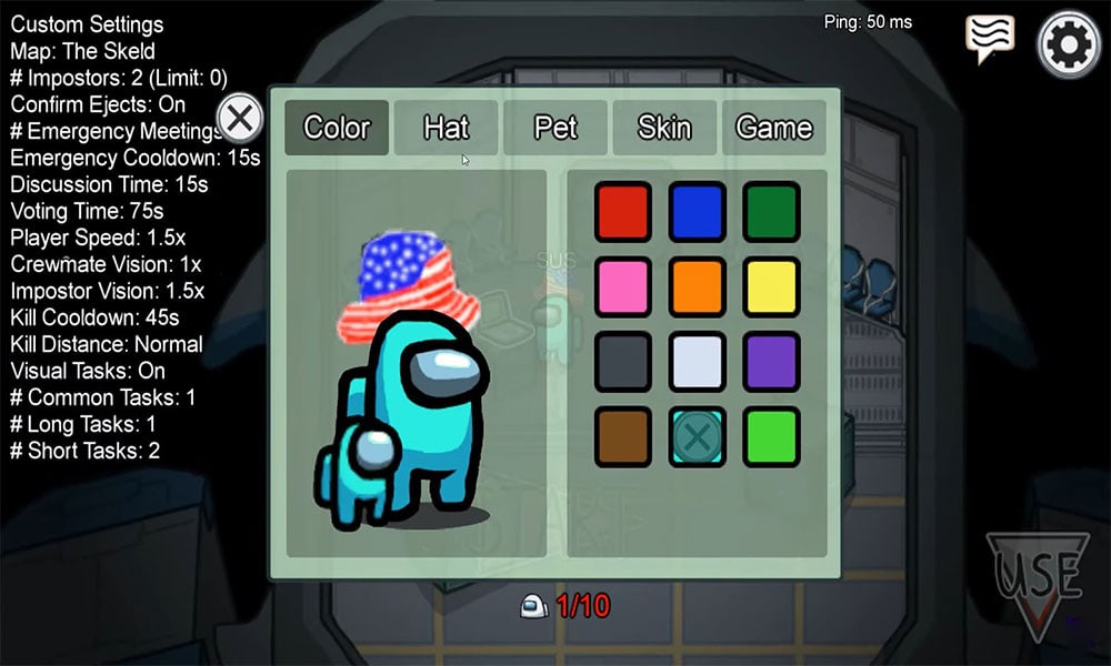 Follow these steps to customize your character’s skins and hats in Among Us: