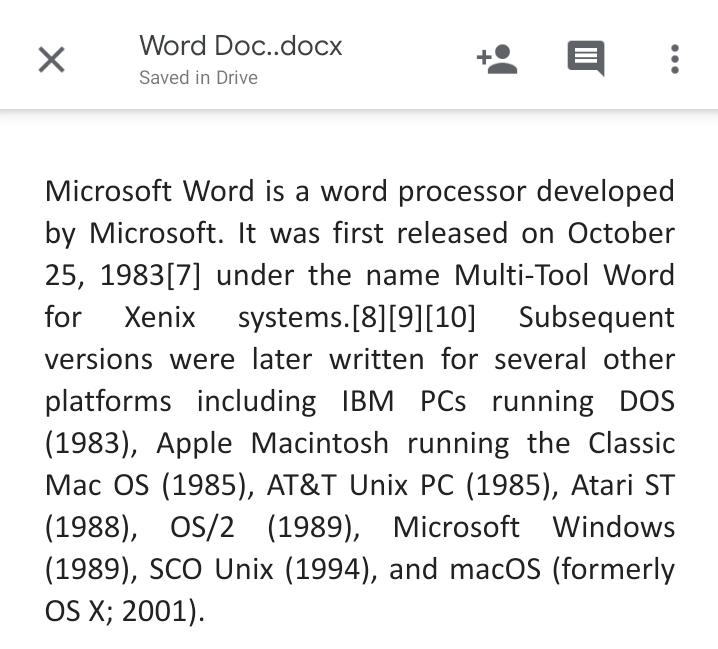- This process should only take a moment. After that, tap on the Word Doc and this will open the document in Google Docs. Hence, your document has been converted.