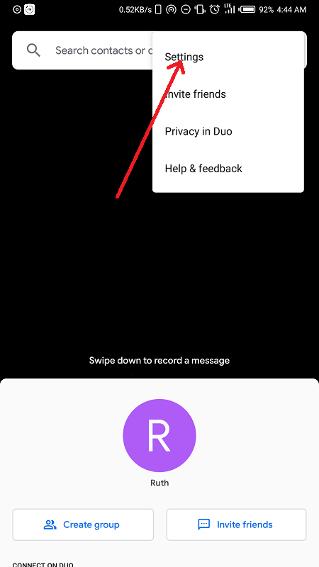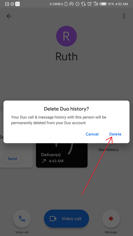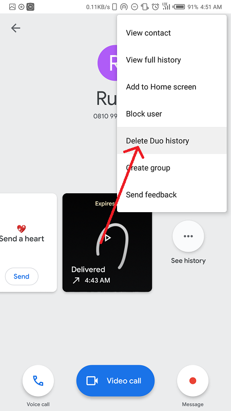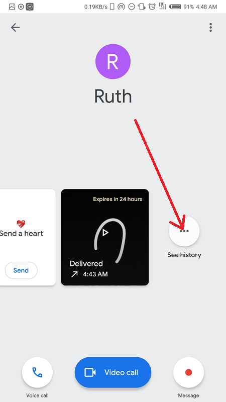 - The third way to check your call history on Duo is by checking individual contacts’ call history. From the home screen of the app, swipe up and select a contact you’ve ever had a video call with and tap on the contact. After that, you’ll see a “See history” icon which can be seen on the right side of the screen and then you tap on it.