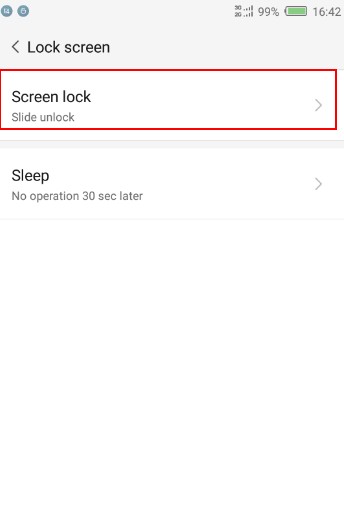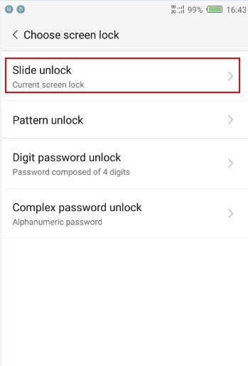 • Remove all kinds of security protection like Pattern, PIN and Password from your smartphone. You can do this by going to the phone Settings >> Lock Screen >> Screen Lock and selecting Slide Unlock which is the default.