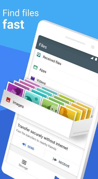 - Files Go uses filters rather than folders so your data is organized more intuitively.