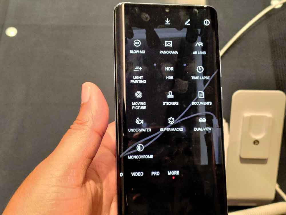 The stock EMUI camera app UI has been tweaked a little bit. The slider between camera shutter button and modes text appears as a red dot this time. That looks minimal and cool though.