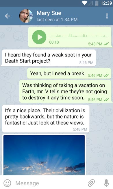 - Telegram works on the weakest mobile connections.