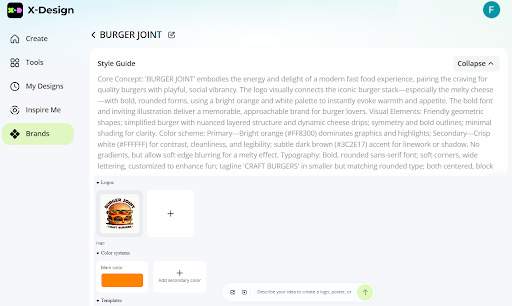 - It saves money. Hiring a professional agency for logo and brand design can cost thousands. X-Design gives you a professional result without the price tag.